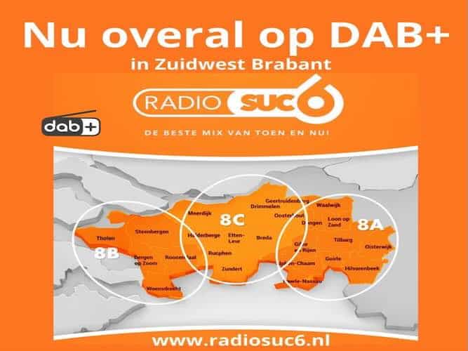 De commerciële radiozender Radio Suc6 is vanaf nu ook te beluisteren via de digitale ether (DAB+) in de regio Zuidwest Brabant.